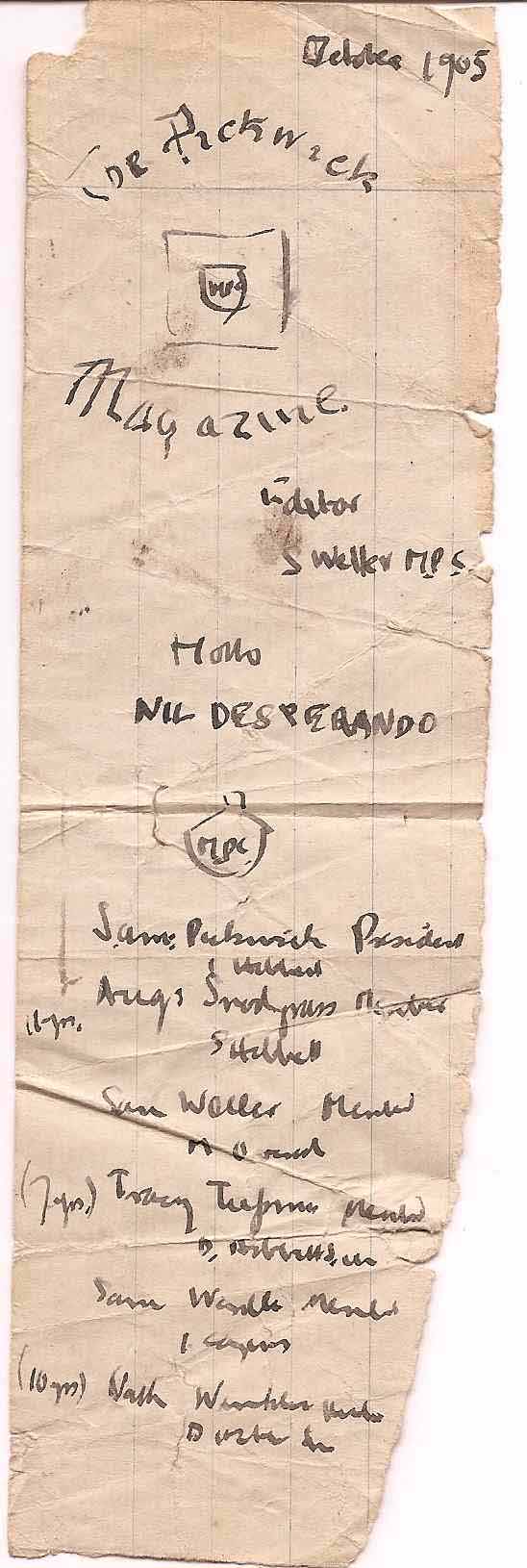 The PICKWICK CLUB of 1905: scribbled note amongst Pte Bertie Hibbett’s Letters.