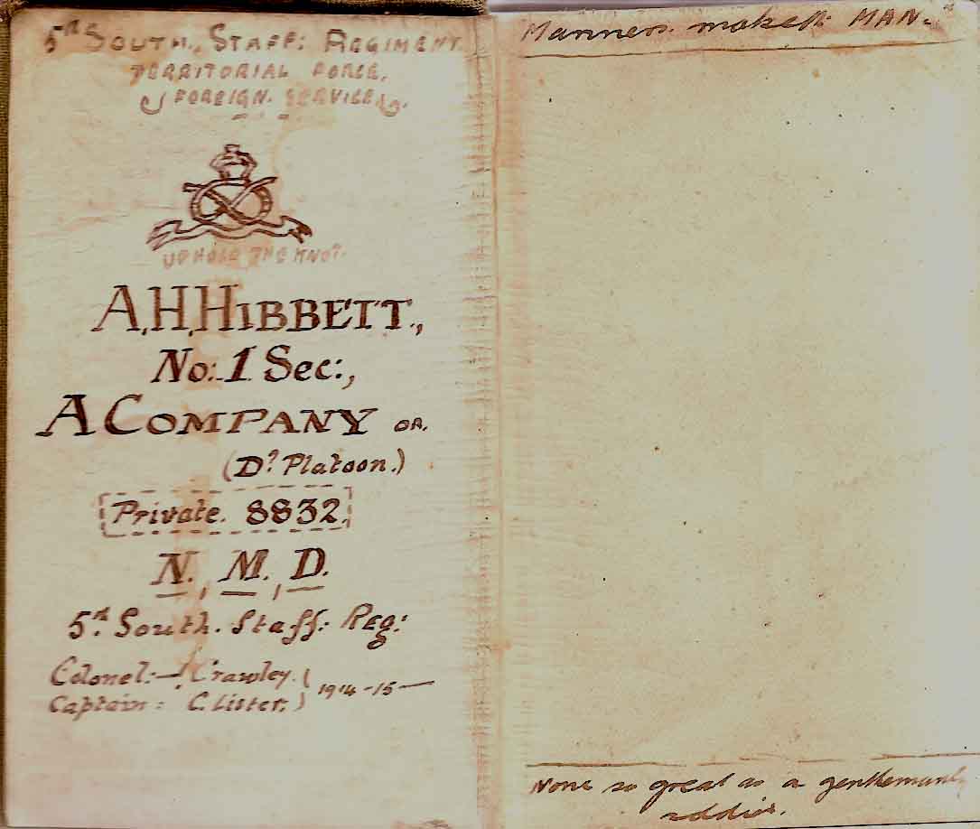 SOUTH STAFFORDS WAR DIARY.