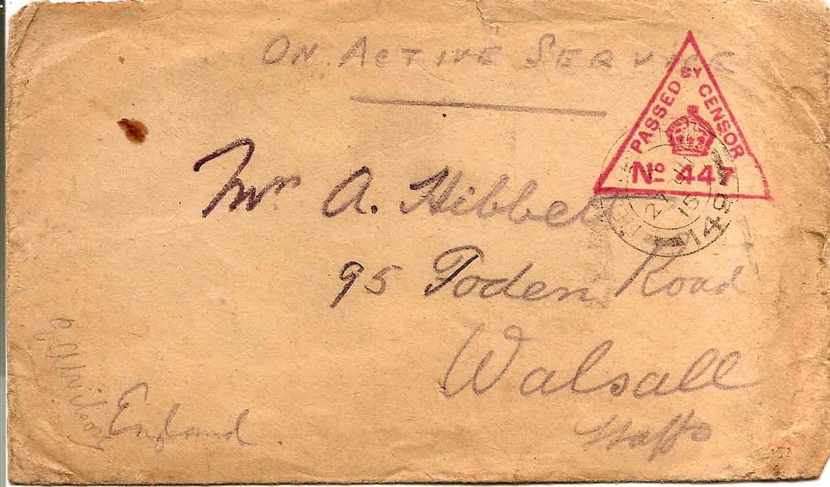 You would like to have a fortnight – say out here as an holiday. On Sunday & Monday evenings I visited the I(ndian) Camp (6). They were dressed in khaki, just like us, only with khaki turbans on with red tassels. Tell Mother (I know she admires them) they are really splendid & marvellous & so sociable. I am ‘struck’ by them everyday I see them, but they have left us now. I had some of their oatmeal cakes called chipatte & they gave me some corn that they eat. You would be amused at their sergeant beckoning – & when they fall in they cease whatever they are doing & fall in straight away, some of their braces dangling behind, some in shirts sleeves, some with blankets around them & anyhow.