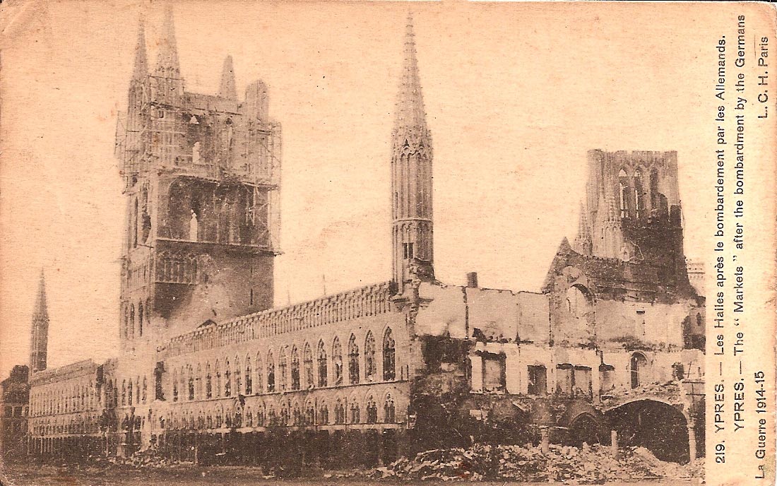 ‘This photograph was with me when I saw Ypres Cloth Hall shelled to the ground. Railway Dugouts, Yves Canal Railway Embankment’. [Kept in his Little Khaki Case].