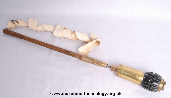 (2) British Mills No 5Grenade (designed by William Mills, Munitions Factory, Birmingham, Feb.1915). No 23 Grenade could be attached by a rod to a rifle to increase the length of throw.