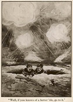 Now, dear Mum, the thought of those sketches in Fragments of France (6) more particularly the wording underneath, did enter my mind as vulgar. Lieut Sanger* told me he (Bairnsfather) had been libelled for one of his sketches.