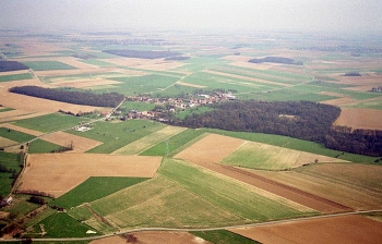 Aerial Photo Gommecourt. Gommecourt Village, Park & Wood today from the air (across centre) with Fonquevillers in distance. 1/th S Staffs Assembly Trenches & The Z objective marked ‘AS’ & ‘Z’ http://www.mikemccormac.com
