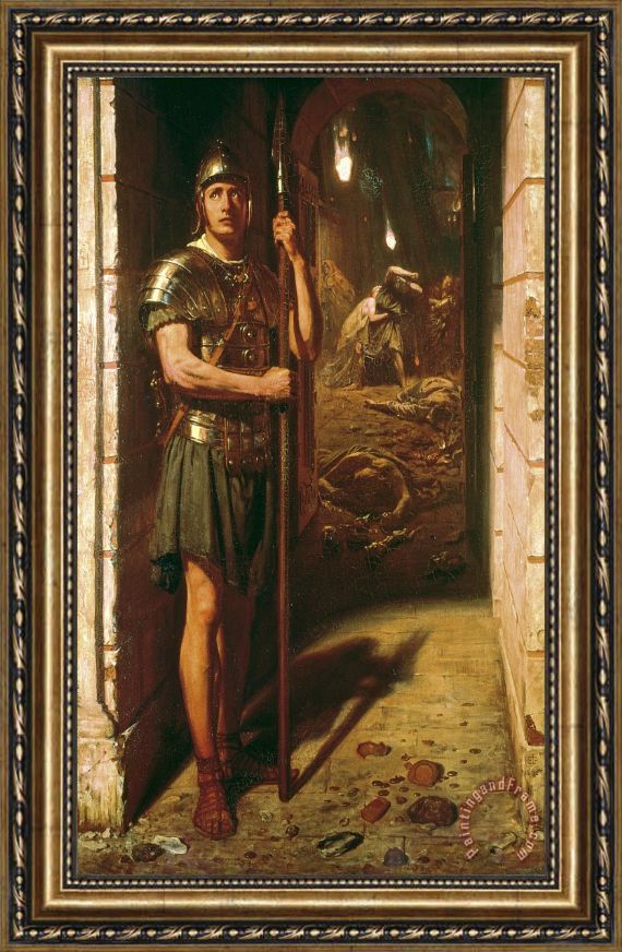 ‘Faithful unto Death’. Roman Soldier at Pompeii. Eruption of Mount Vesuvius. 1865. Edward John Poynter. 1836 -1919.
