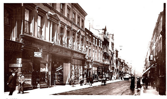 (9) Boots Chemist of Bold Street Liverpool. Postcard 1913. Flickr: ronramstew blog states Bold Street was favoured by middle classes ‘before their big flight to the Wirral’. Building is now a Charity Shop.