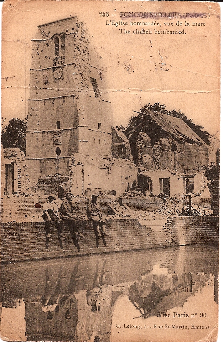 I stood waiting in the mouth of the trench near to Fonquevillers Church and the Dressing Station in the Crypt, and there I was interviewed by Padre T.Howard (whom I was to meet again, after the War, at Lichfield Theological College).