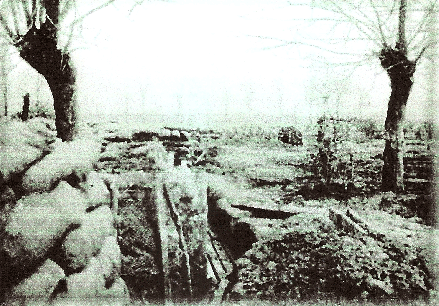 This was my small contribution in preparation for the ‘Big Push’. I had the use of a periscope, and was disguised as a sandbag, in case I had to look over the top of the trench to see the formation of the trees and the trenches more clearly.
