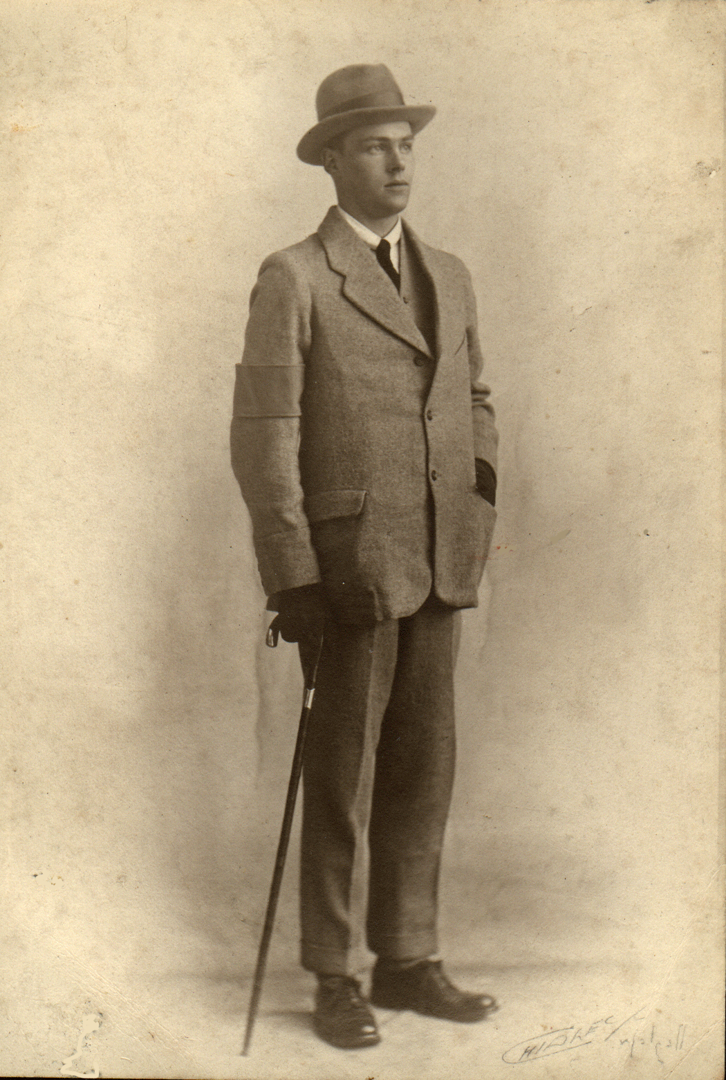 Basil Hibbett in mourning for his brother Sydney. Note black armband on left arm. Autumn 1916.