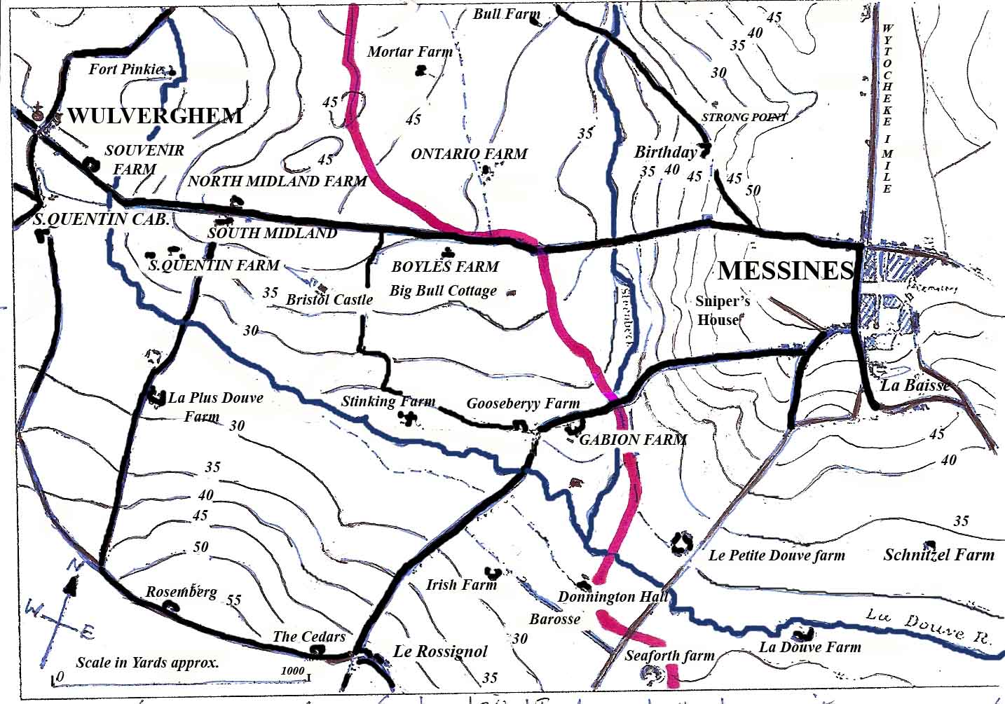On 2nd April, the 1/5th South Staffordshire Regiment, 46th Division (North Midland) after its first baptism of fire at Armentieres, took marched north towards Ypres. to take over a section of the Line at Wulverghem, opposite Messines (Mesen).